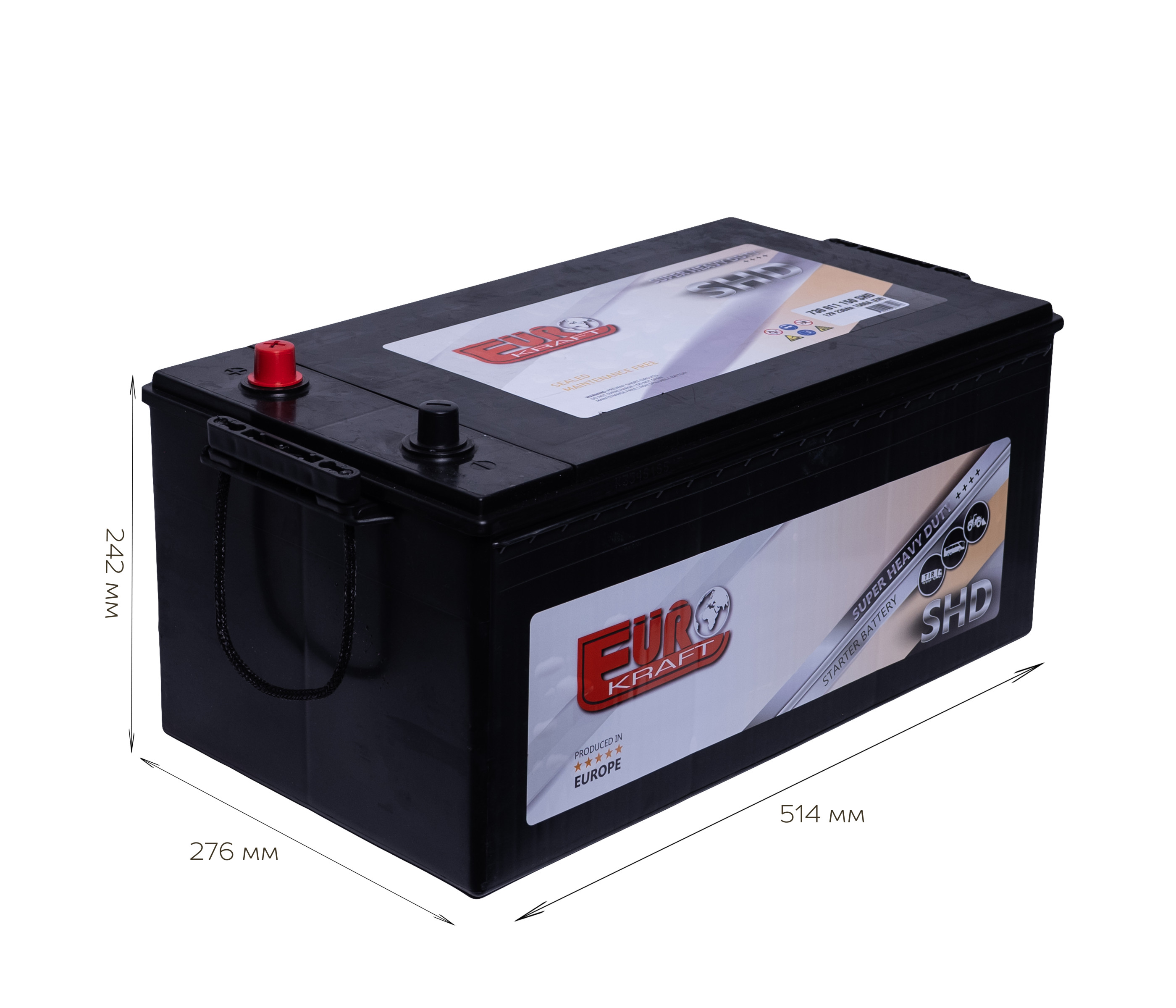 Серія EUROKRAFT SHD — це наша новітня високоефективна батарея для широкого спектра комерційних автомобілів, яка забезпечує надійне живлення. Тепер ця серія герметична, не потребує технічного обслуговування та оснащена вдосконаленим сепаратором зі скломата, що забезпечує високу міцність і довговічність під час інтенсивного міського водіння або в умовах помірного циклічного використання.