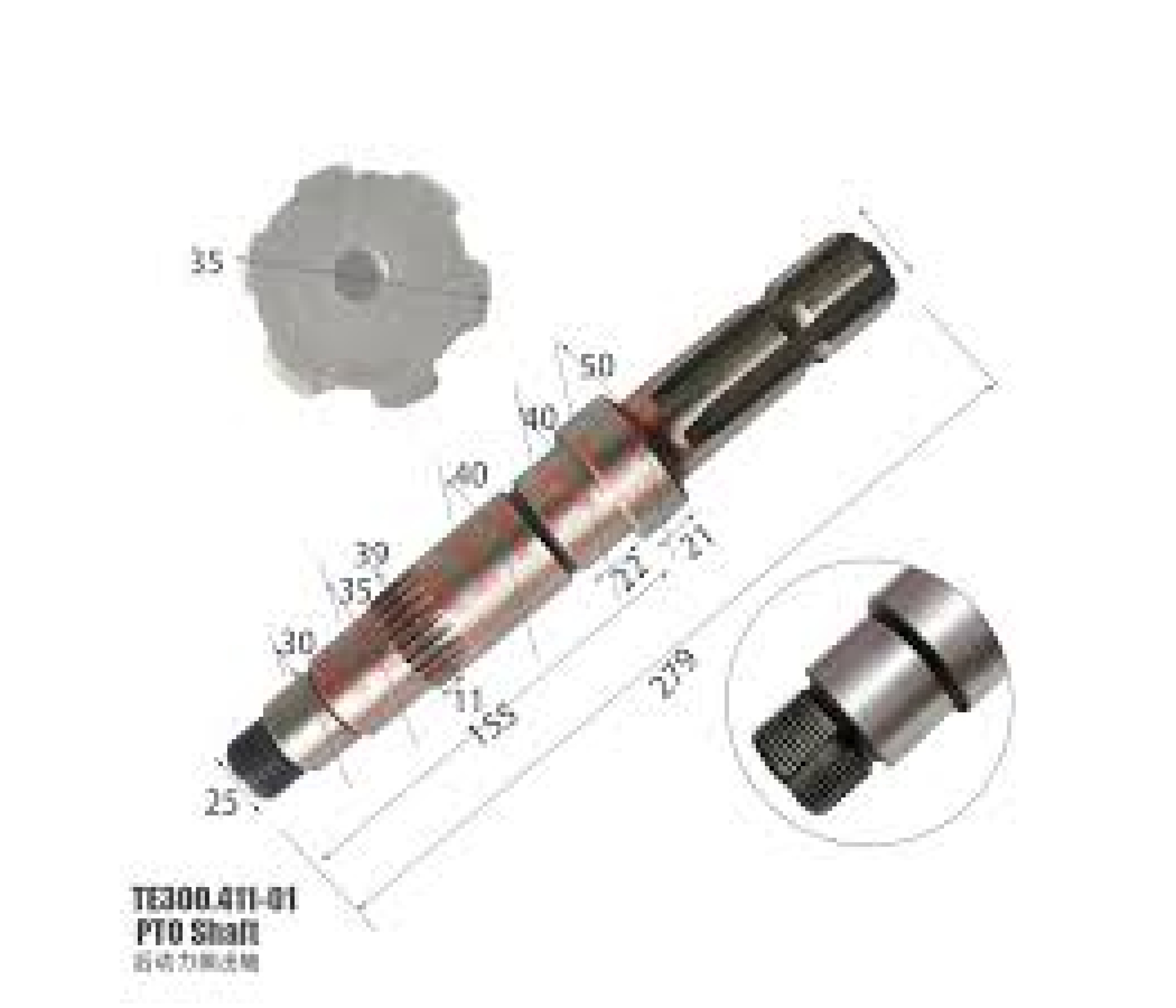 Вал заднього ВОМ (хвостовик) (6 шл.) ENEY TE504 Foton 354