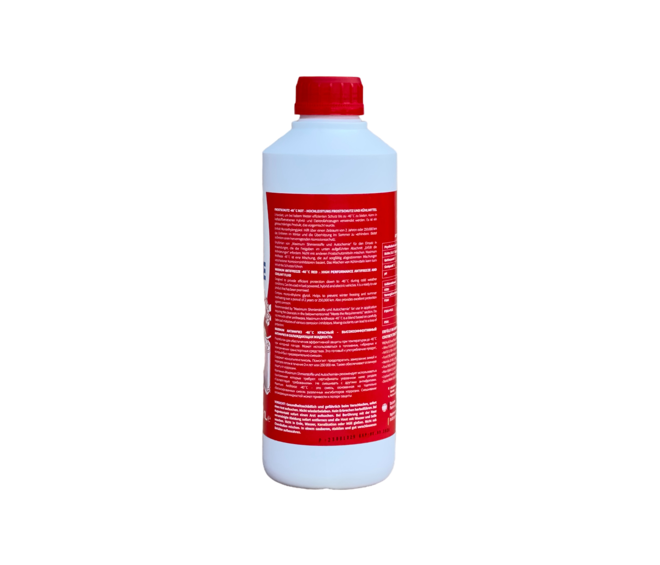 VW/Audi/Seat/Skoda/Porsche/TL 774F (G12), BS 6582, FW Heft R443, Afnor R 15/601, SAE J 1034, JIS K 2234, KSM 2142, NATO S 759, CUNA NC 956-16 Cummins 85T8-2/90T8, John Deere H 24 B1, New Holland 9-86, ASTM D 4985, ASTM D 3306