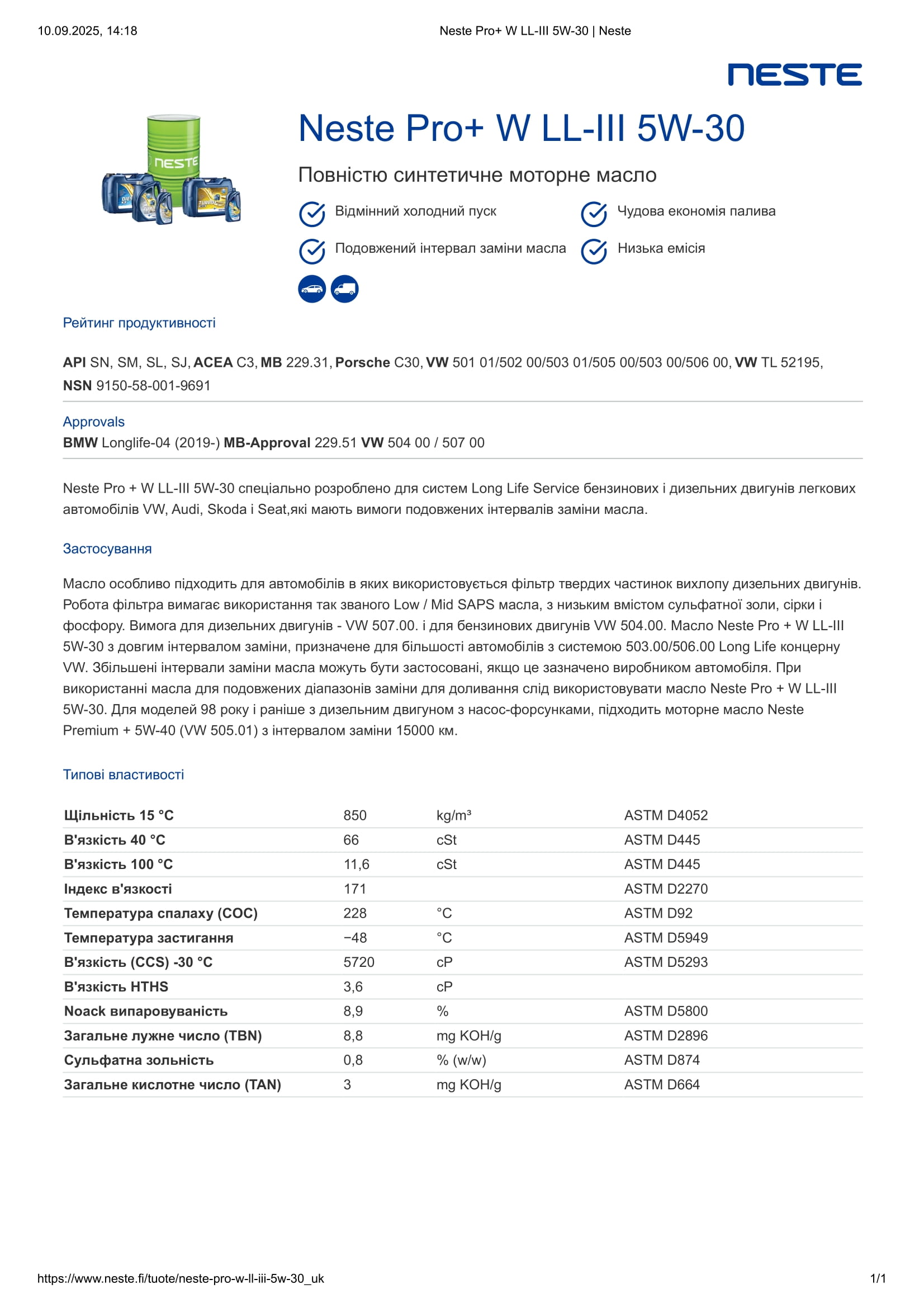 MB 229.31, Porsche C30, VW 501.01, VW 502.00, VW 503.00, VW 503.01, VW 505.00, VW 506.00, VW TL 521 95