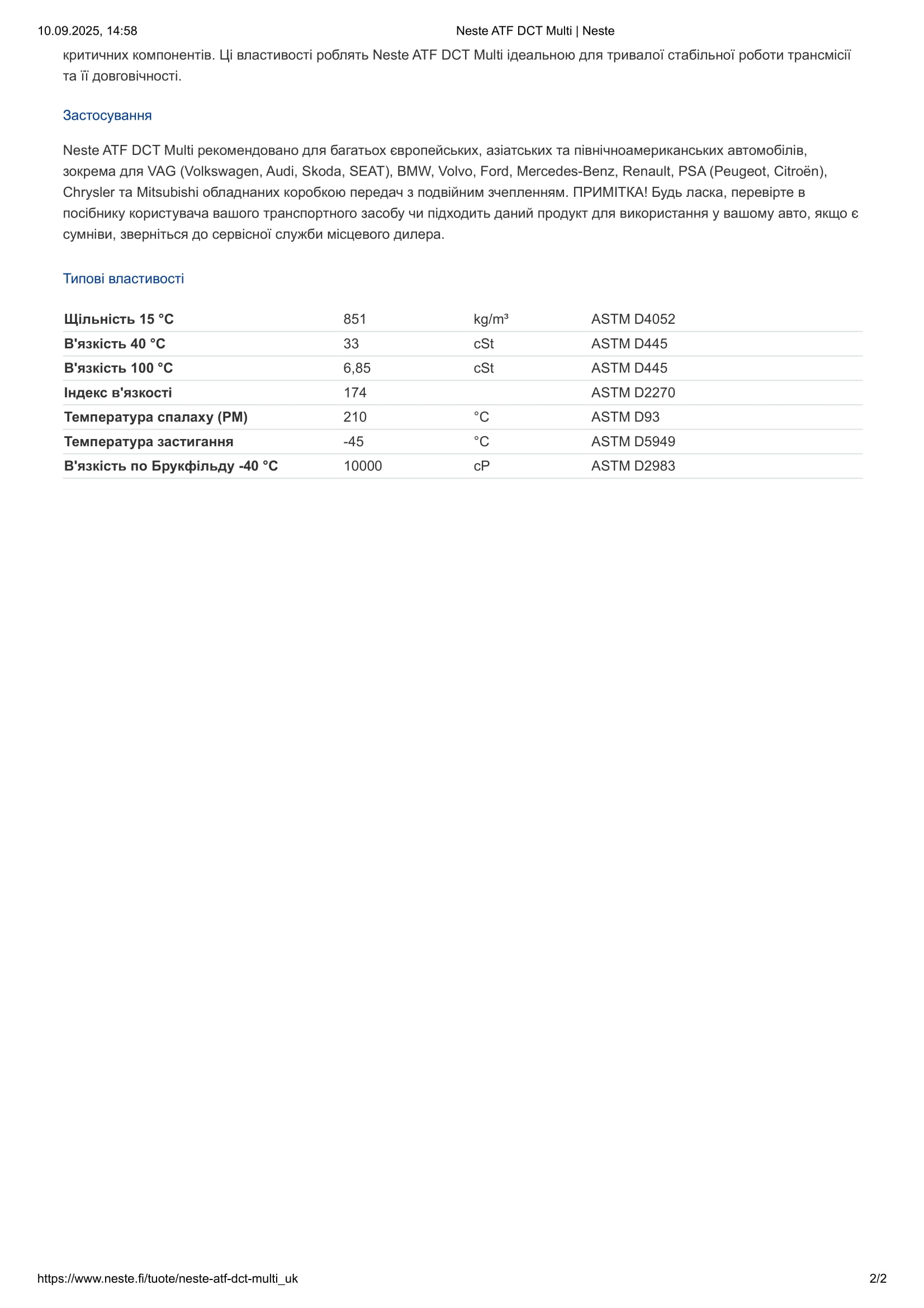 Олива трансм. синт. для авт. КПП NESTE ATF DCT Multi_1л